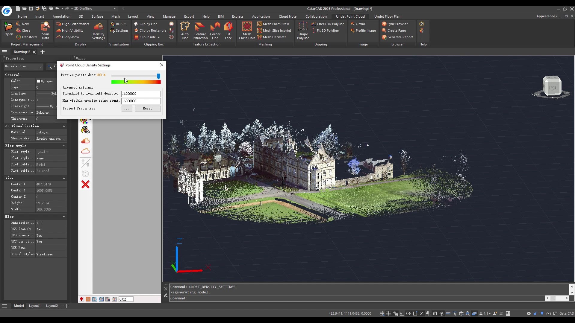 Verschiedene Visualisierungsmodi, Einstellungen für Dichte, Anzahl und Transparenz der Punkte für eine reibungslose Verarbeitung auch bei großen Dateien.