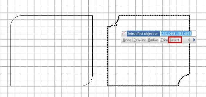 Abrunden im umgekehrten Modus hat eine sehr breite Palette der Verwendung insbesondere im Bau- und Möbelindustrie. Der Befehl FILLET unterstützt jetzt eine neue Option – Invert. Sie können mithilfe dieser Option ein entgegengesetztes Abrunden erstellen.